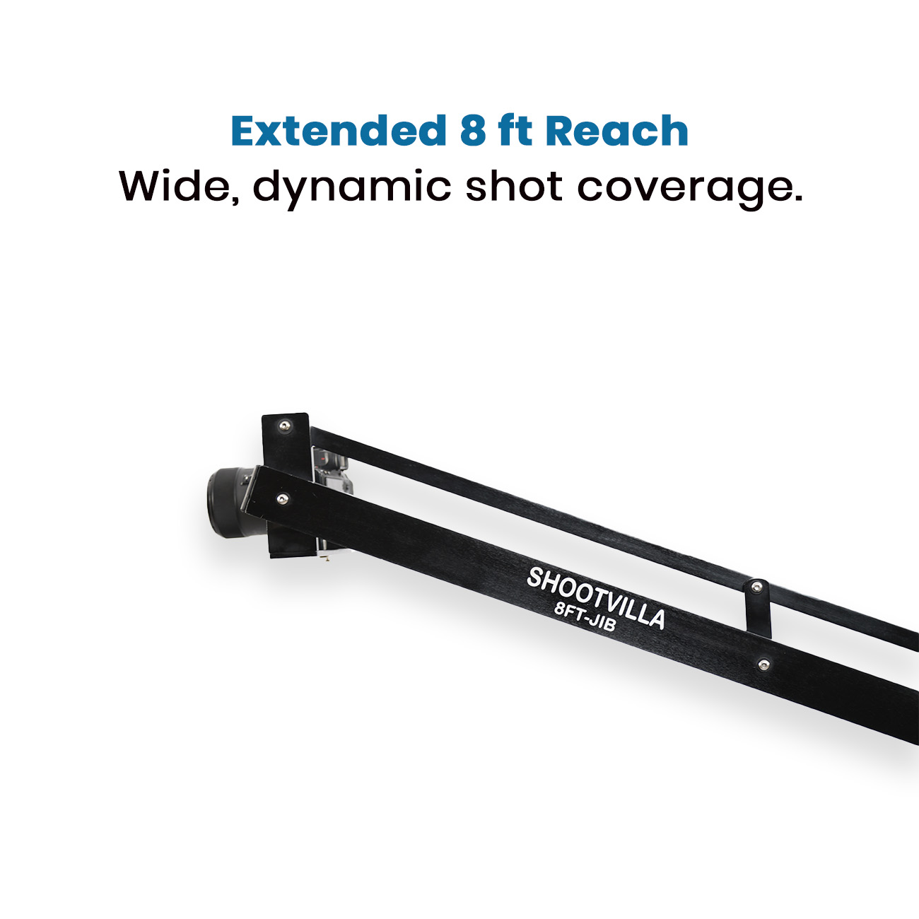Shootvilla Mini Camera Jib Crane is a custom-designed aluminium camera jib is compatible with most DSLRs, camcorders, and cinema cameras, supporting equipment up to 8kg. It ensures stable and precise camera movement for capturing both high-angle and low-angle shots.