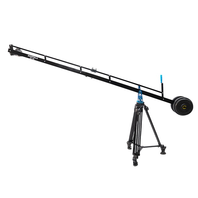 The custom-designed aluminium jib crane is compatible with most DSLRs, camcorders, and cinema cameras weighing up to 8 kg. It is a versatile production tool that ensures smooth and stable camera movement while capturing high-angle and low-angle shots.