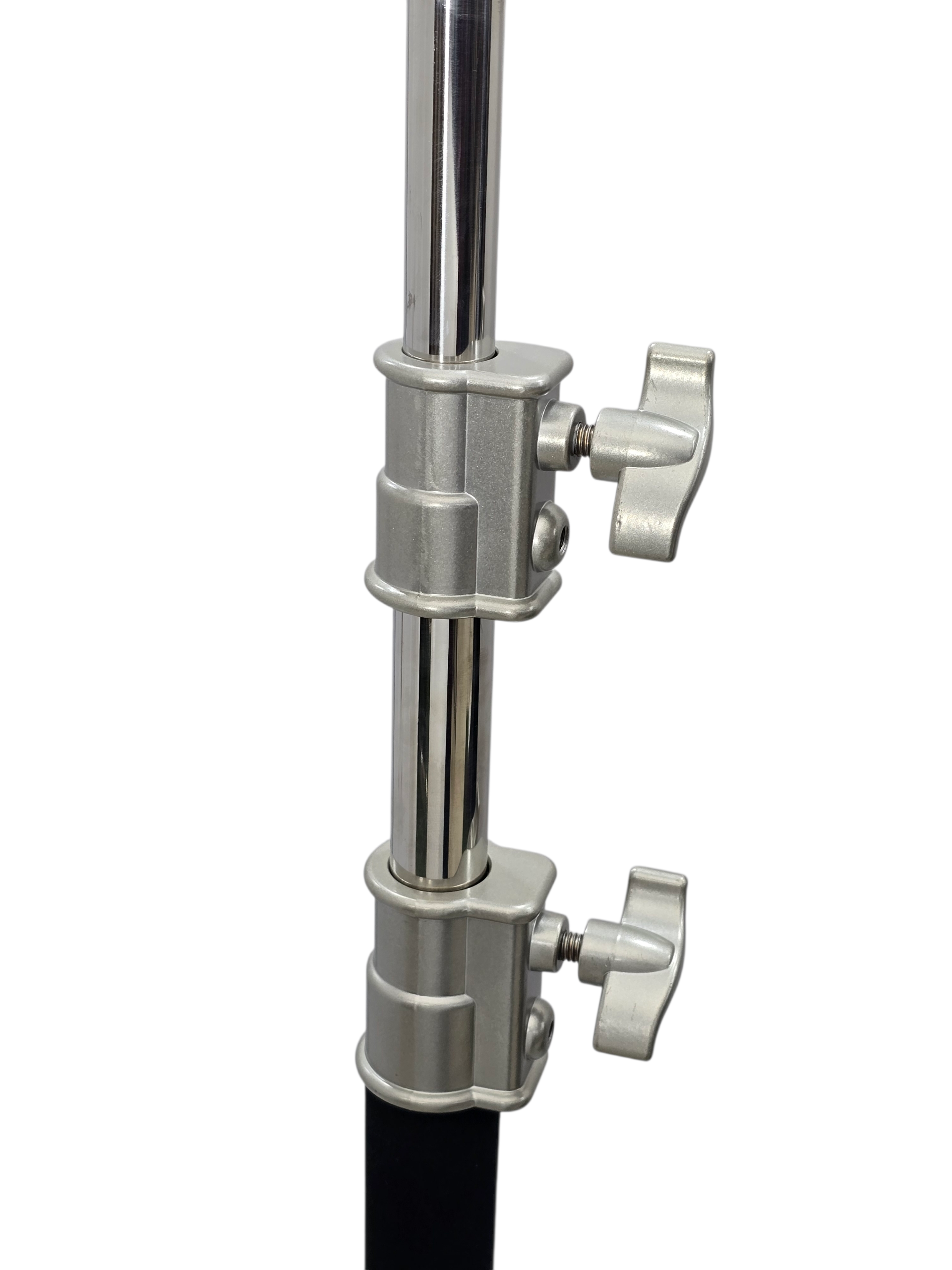 This professional C-Stand is built from high-grade stainless steel, offering exceptional stability for lighting, modifiers, microphones, and other studio accessories. Its adjustable risers and strong locking knobs ensure smooth height adjustments, while the wide-leg base provides reliable support on any set. Perfect for photography, cinematography, and video production.