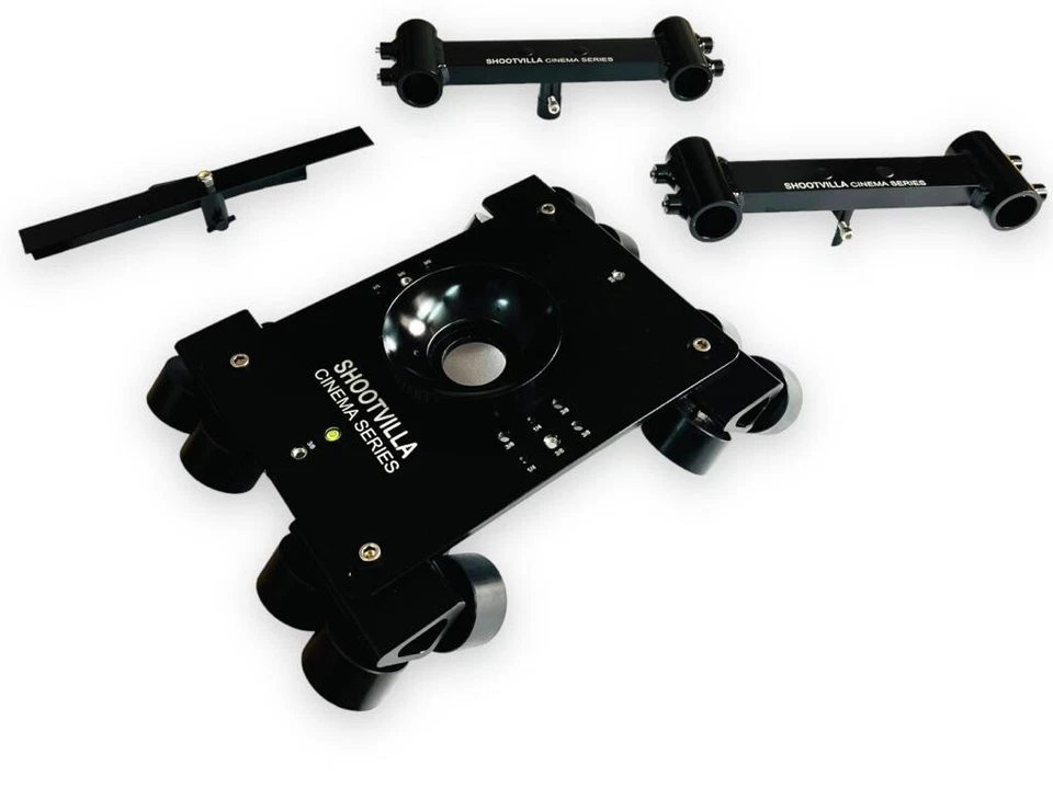 Shootvilla Cinema Dolly is built with craftsmanship for a long production life and strong economic return on investment. The quality crafted robust construction takes a massive 60kg / 132lb with ease.