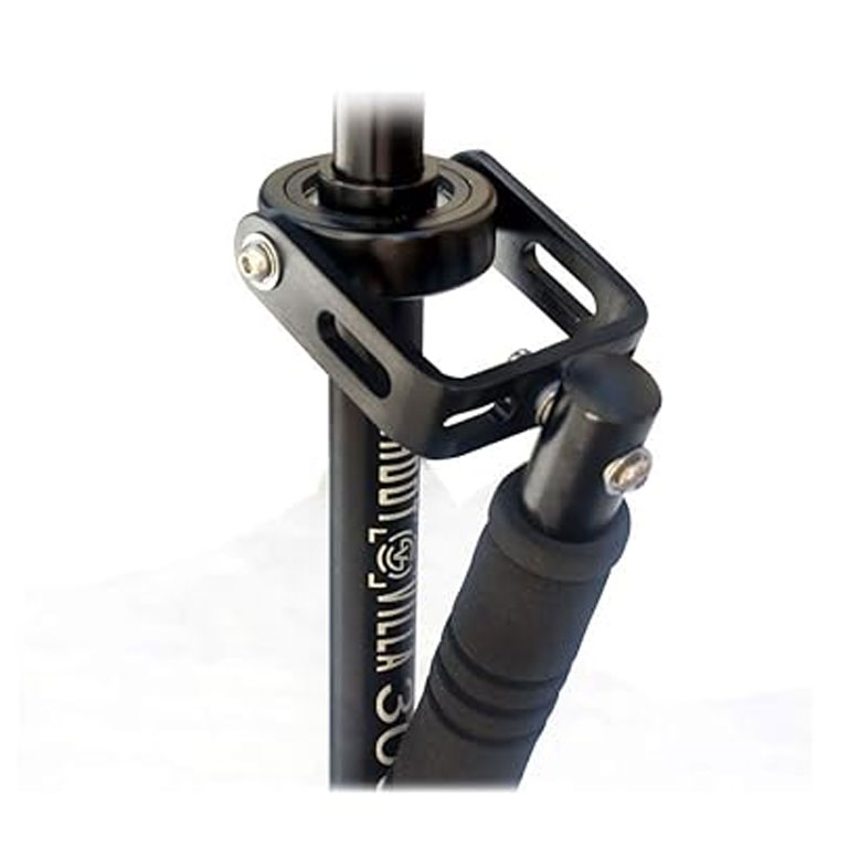 - Black anodized aluminum, CNC machined, double bearing, easily movable handle, universal head plate, telescopic post with gimbal assembly. For cameras upto 3.5kg or 8 lbs