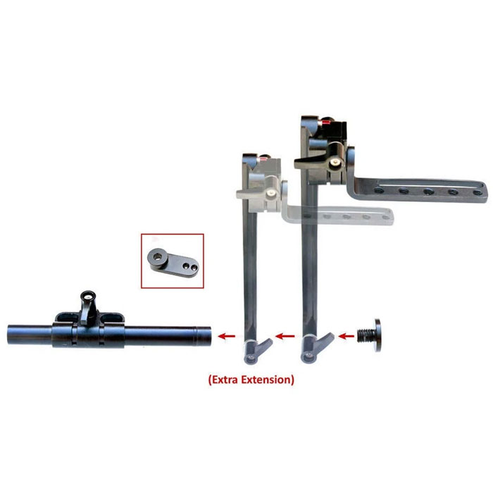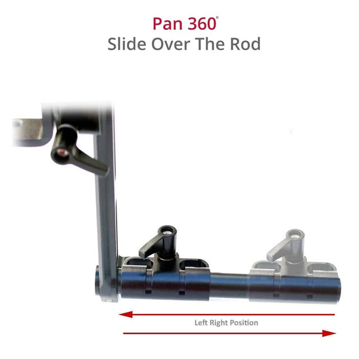 – Adjusted onto your rail system either through the rail mounting adapter or directly to the camera handle bracket with standard ¼” threads.