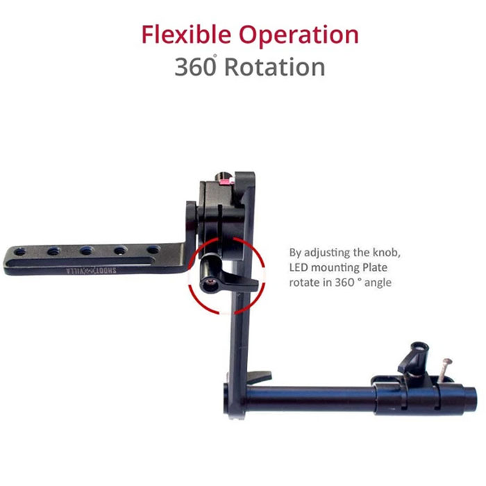 The complete solution to all those videographers demanding for compact and versatile EVF mounting system is Shootvilla New EVF Mount. It allows you to mount almost any EVF on to a camera provides secure, lightweight interface that allows vertical adjustment so as to achieve the desired level of position.The height adjustment clamp holds the mounting bracket horizontally from one end and the rod from the other end with the strong metal knobs. 15 mm rail mounting adapter connects on to the rods. In addition to the linear adjustment, mounting bracket allows the viewfinder to be tilted to 360 deg. angle. The height adjustment clamp holds the mounting bracket horizontally from one end and the rod from the other end with the strong metal knobs.