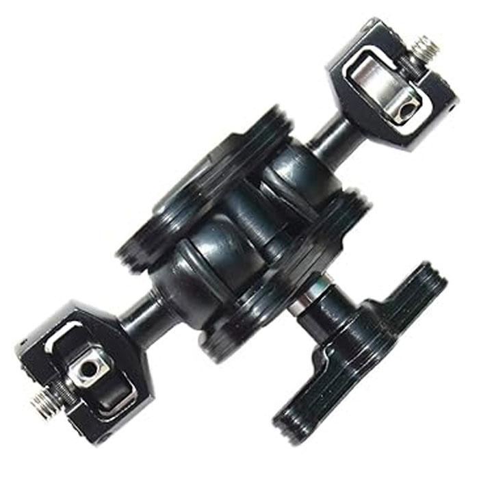 1. It is made up of double ballheads with 1/4 Screws and a ballhead clamp.