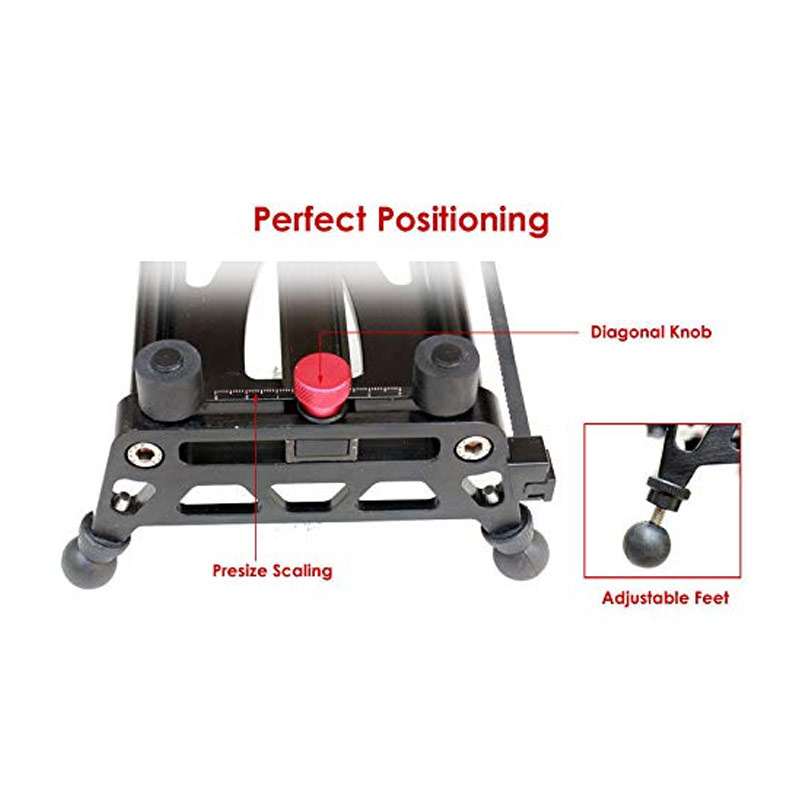 - bigger carriage size for ball heads and fluid head