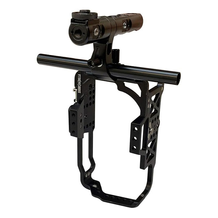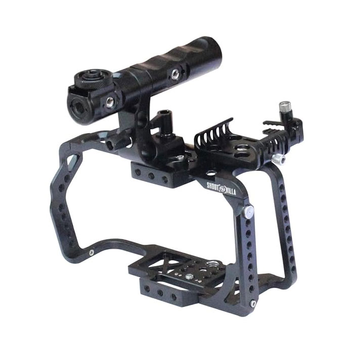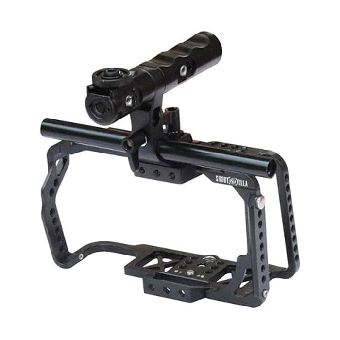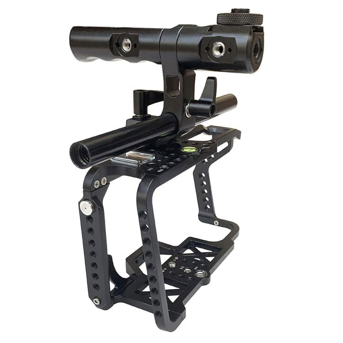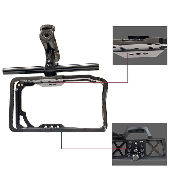 - MUTIPLE MOUTINGS This cage comes with multiple mounting points, such as 1/4″ & 3/8″ threaded holes, cold shoe and 3/8″ locating holes for ARRI standard, allow you to attach more accessories