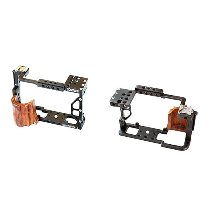 This updated cage is exclusively designed for Sony A7III. Sony A7III Camera cage is form-fitting aluminium exoskeleton that protects your camera well while also offering mounting options for attaching accessories. In the box: Camera Cage for Sony A7III Top handle Features: Access open to SD card slot, battery compartment, Multi-Interface Shoe, and all buttons/controls. Charging of battery without removing the camera. Light weight cage with walnut hand grip for comfortable handheld working. Lightweight cable clamp included that screw into any of the 1/4″-20 threads holes. Corners of Cage are made comfortable for handheld working.