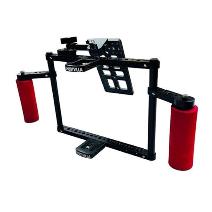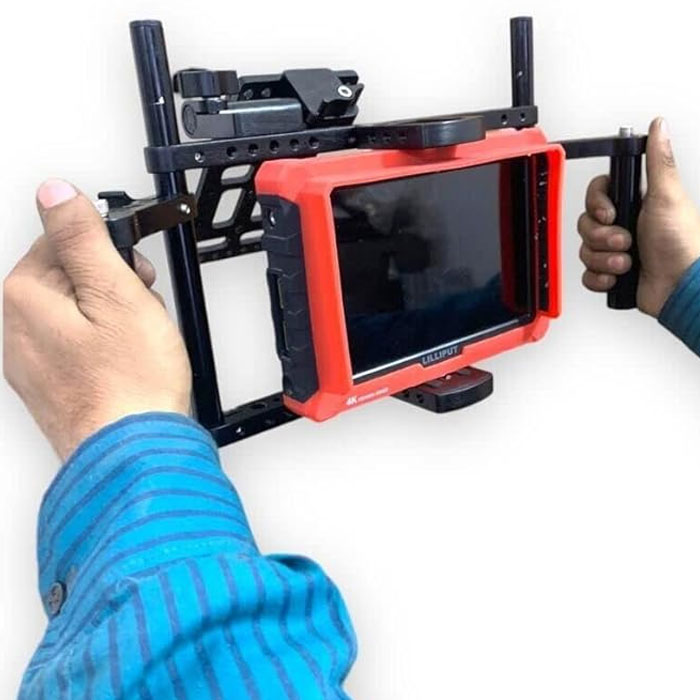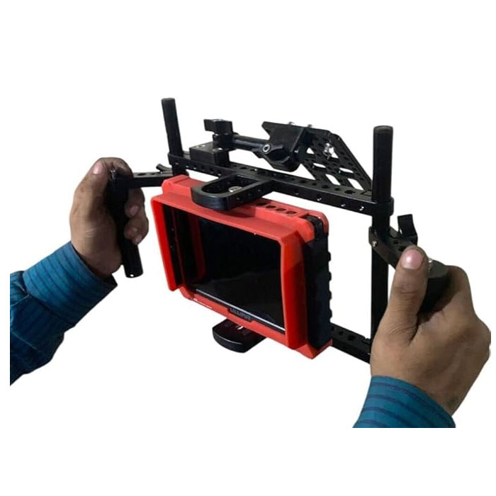 - EXPERTLY DESIGNED DIRECTOR CAGE for LCD Monitor gets adjusted to different sizes for mounting multiple sized monitors from 7″ to 9″