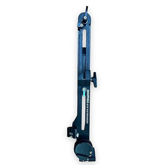 A flip-out lever arm allows you to rest the extension on your camera when not attached to the leveling rod (not included). The EVF mount features a friction mount that allows your EVF to tilt with just the pressure of your face, or you can lock it in one place so that it does not rotate. The EVF extension mounts on your camera and a built-in swiveling dovetail shoe accepts the dovetail foot of the leveling rod (not included).