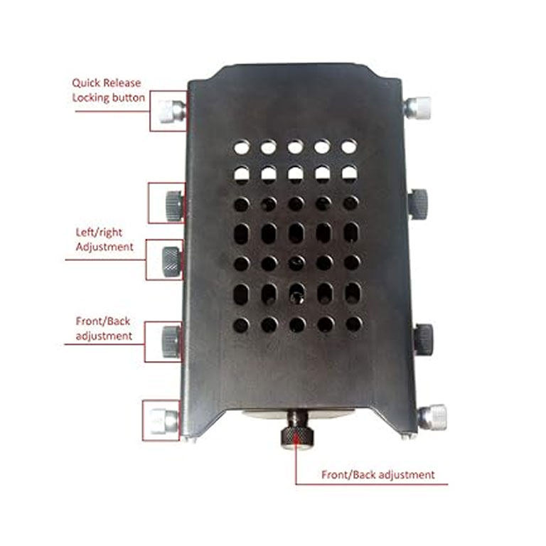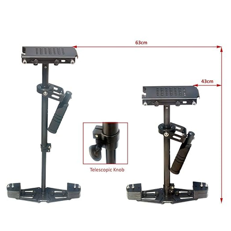 • Universal camera mount Plate. Adjustable Telescopic Post with locking knob. Compact portable design. 360 deg Smooth rotatable gimbal. The bottom base plate allow multiple mounting options.
