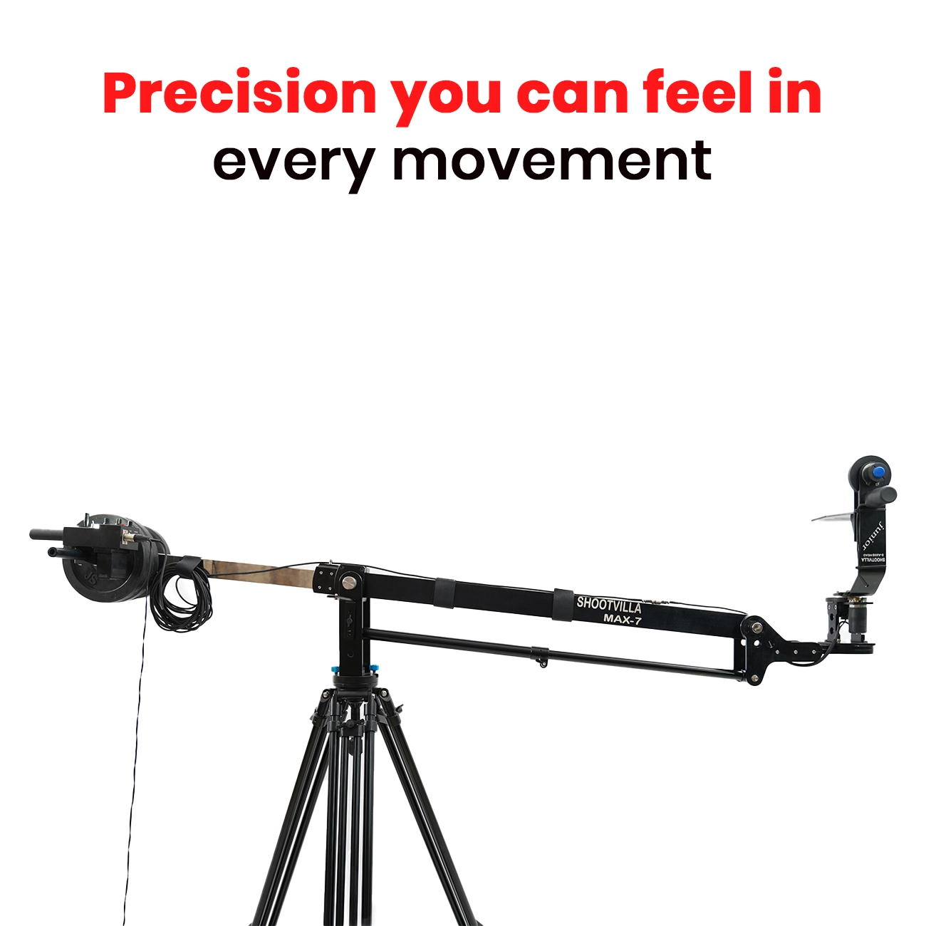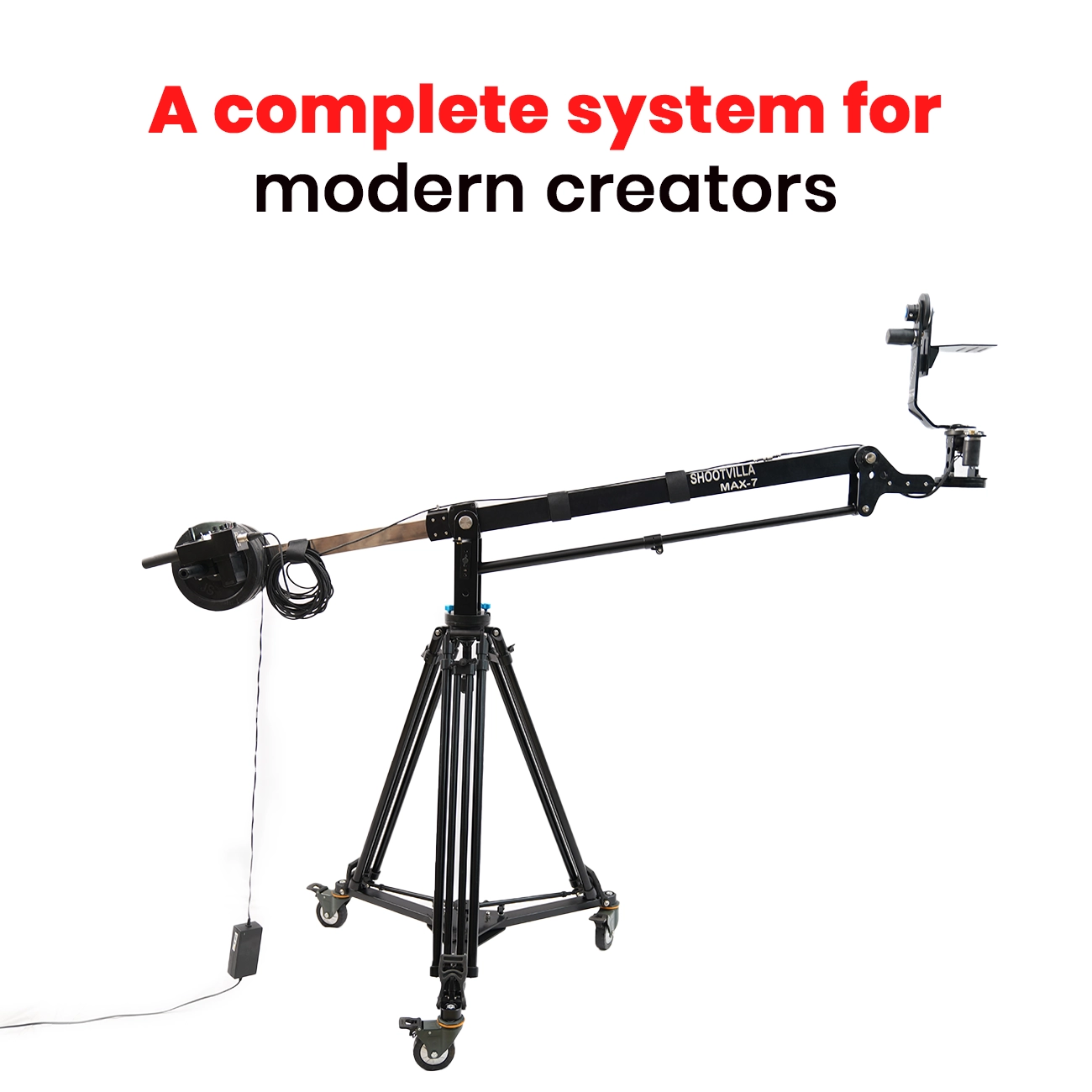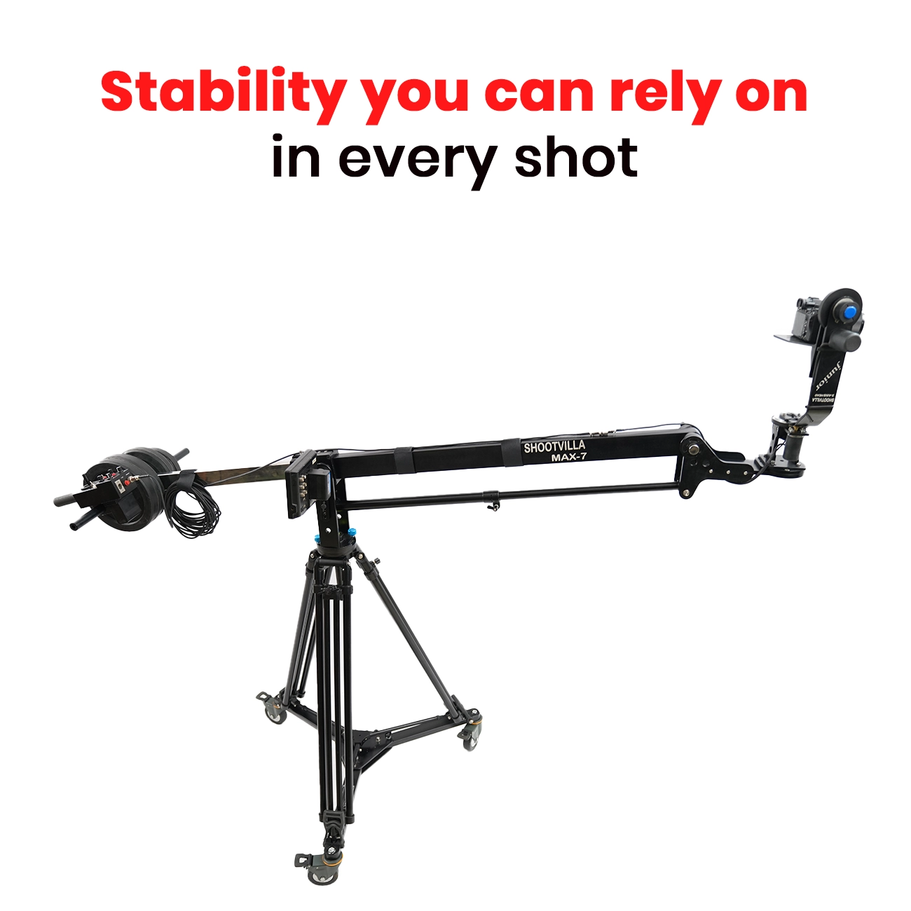 The Shootvilla Max 7' Video Jib Crane Package helps creators capture smooth sweeping pans and rising camera shots more effectively. Moreover, its portable design supports both indoor and outdoor filming, so users can move between locations with greater ease. The jib also extends backward with a stainless steel extension, and therefore it gives the operator better control while framing shots.