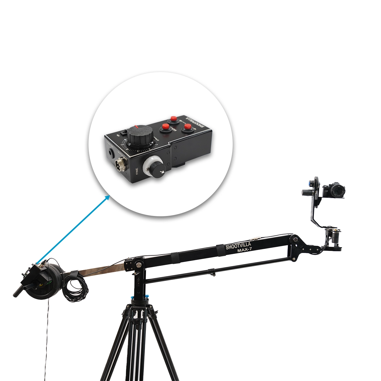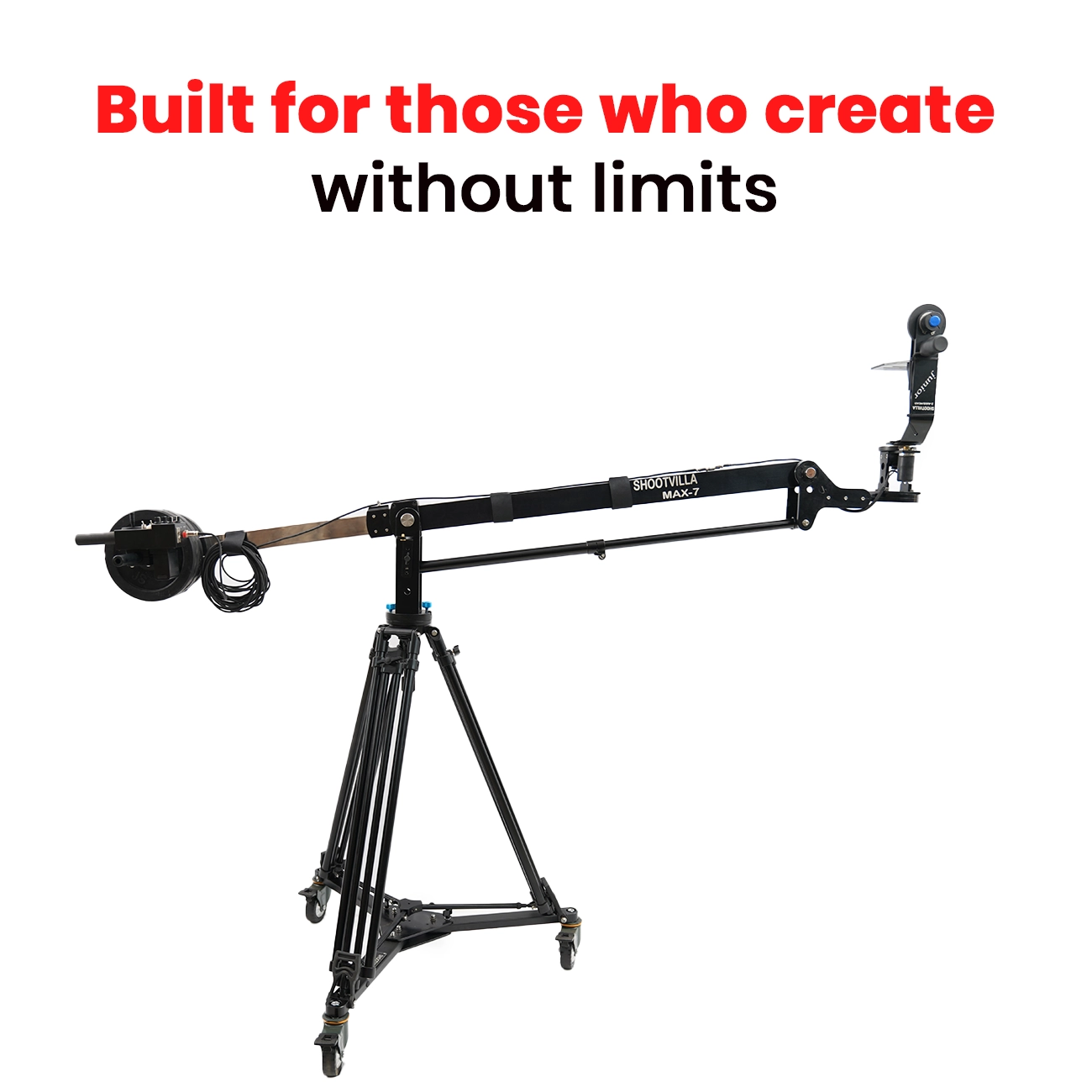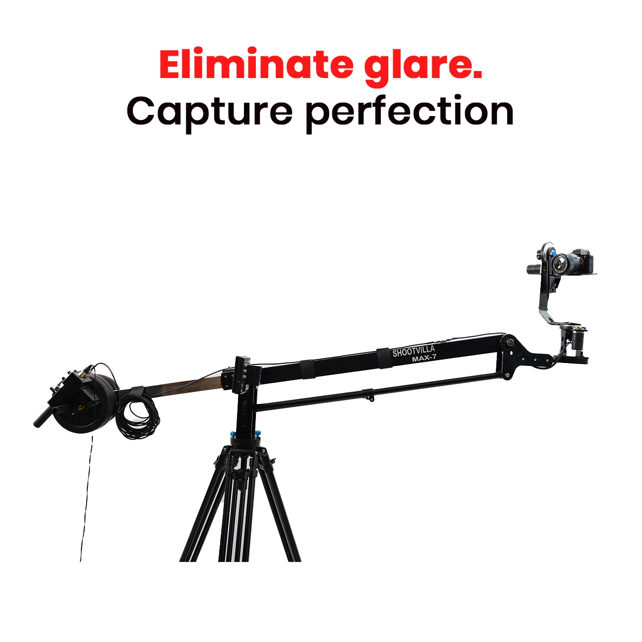 The Shootvilla Max 7' Video Jib Crane Package helps creators capture smooth sweeping pans and rising camera shots more effectively. Moreover, its portable design supports both indoor and outdoor filming, so users can move between locations with greater ease. The jib also extends backward with a stainless steel extension, and therefore it gives the operator better control while framing shots.