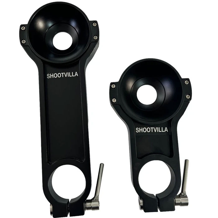 Shootvilla provides a variety of camera grip equipment to meet the needs of filming professionals. The Euro / Elemac Base Mount Offset Bowl Adapters come in a range of lengths – Short/Medium/Long, with 150mm bowls, to accommodate all industry standard fluid heads. Machined from precise CNC aluminum, the individual adapters ensure a solid, stable and long lasting camera mount. The adapter is equipped with a solid Ratchet Knob on one side which ensures secure lock-off to the camera.