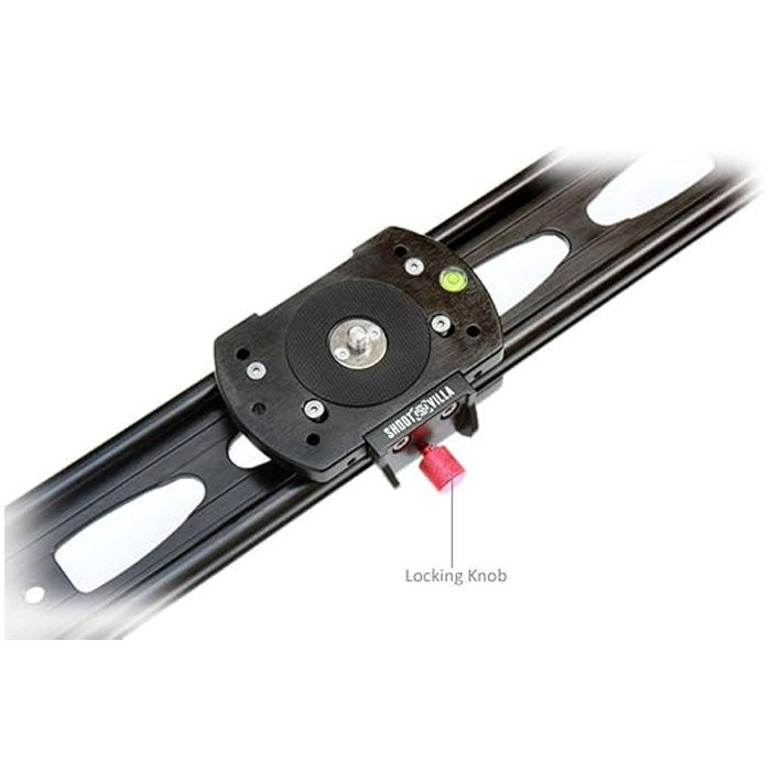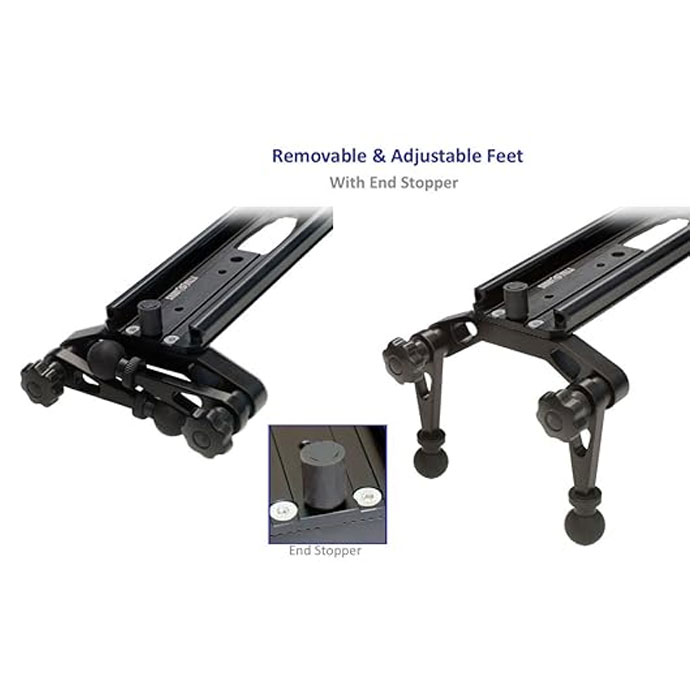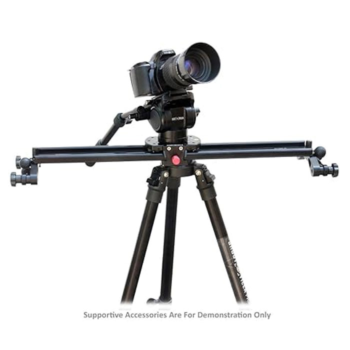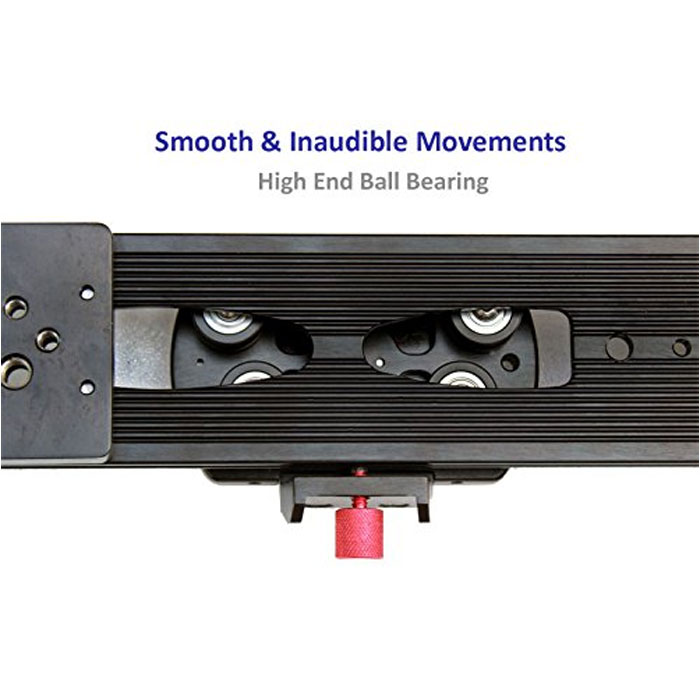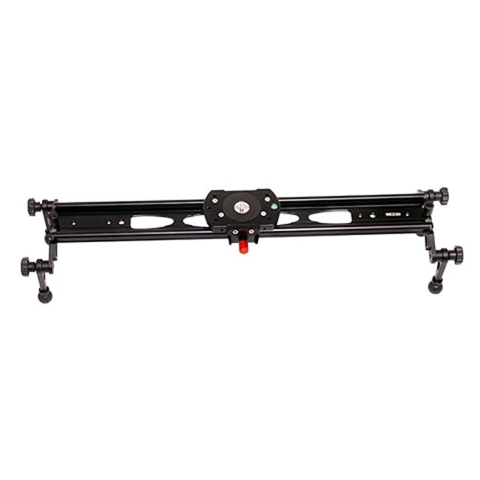 The wider rail track system to enhance smoothness in sliding with ball bearing technology helps you to take shots from crazy angles. The camera video slider rides on wheels with bearings and gives extraordinary smoothness in shooting. Versatile nature of slider allows positioning of the slider slanting at different angles on the tripod. Adjustable rubber padded feet for precise leveling on uneven surfaces. Red colored side mounted brake to lock your camera at static position and bubble level to measure the horizon. Plenty of 1/4″ & 3/8″ threaded slots for tripod mounting & Sliding plate with standard 1/4″ screw for camera mounting.