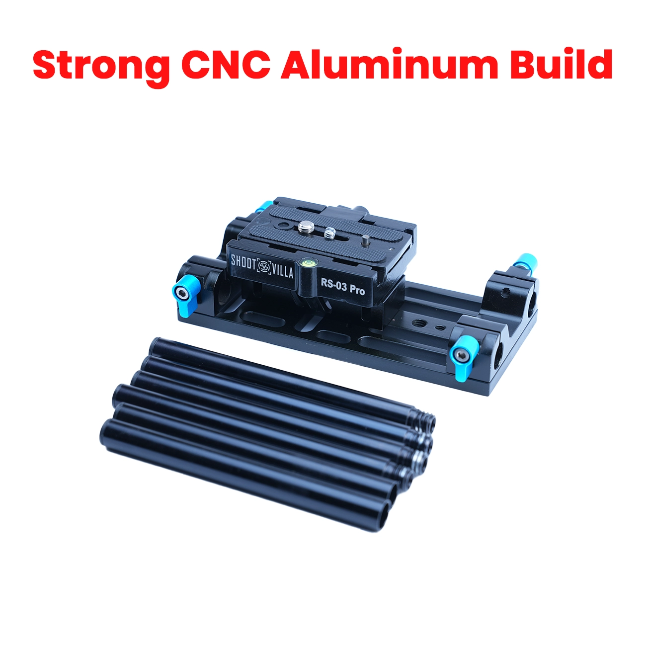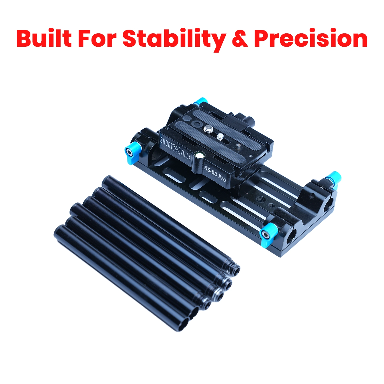 Shootvilla uses high-grade aluminium and CNC-machined construction in this rail support system. The black anodized finish improves durability and gives the rig a professional look. Users can adjust the system both horizontally and vertically, which helps them align the camera properly and create a more secure setup. The base also prevents the camera from twisting and raises it to a standard working height.
