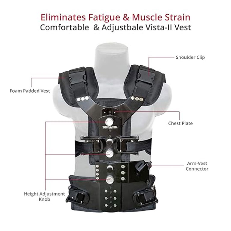 The lightweight & foam padded Vest plays a significant role in eliminating the stress on arms due to holding the handheld stabilizer for long hours.